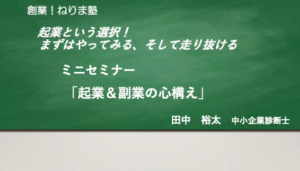起業という選択〜まずはやってみる、そして走り抜ける〜 1、ミニセミナー「起業&副業の心構え」